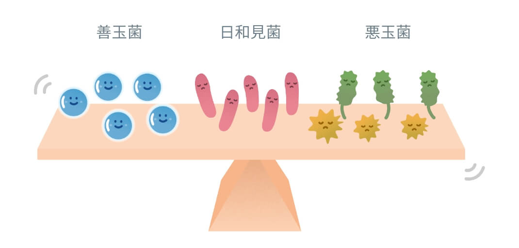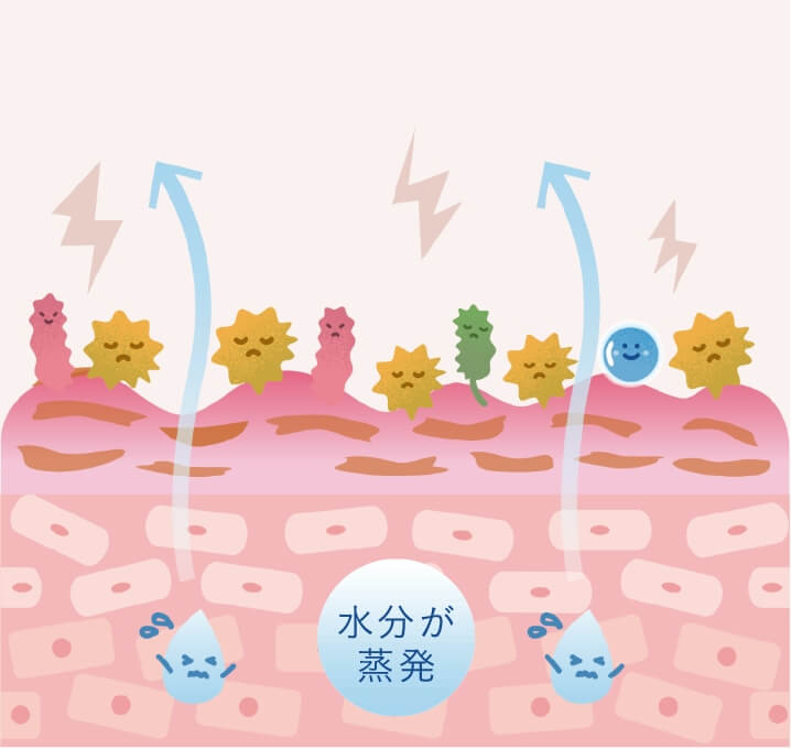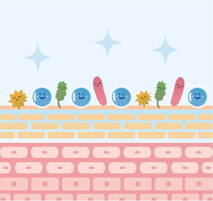 肌にはたくさんの菌がすんでいます。健康な肌は「善玉菌」「悪玉菌」「日和見菌」のバランスが整い、弱酸性です。しかし、季節の変わり目やストレス、体調の変化、間違ったスキンケアで菌のバランスが崩れると肌トラブルの原因に。