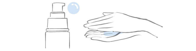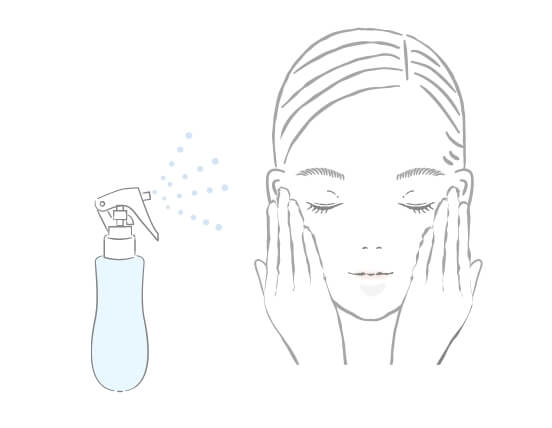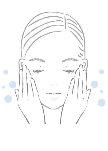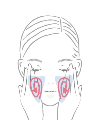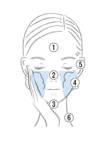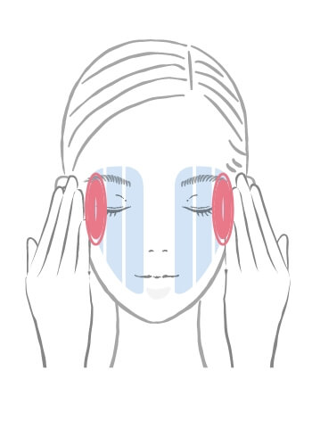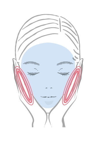 顔の内から外へ向かって3回に分けて横にずらしながら、やさしくハンドプレス(押し込み)します。
