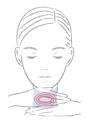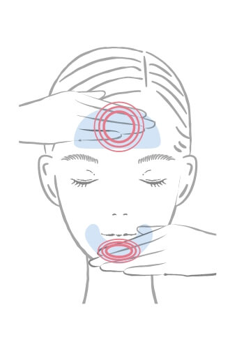「額」と「口もと・あご先」を包むように手のひら全体でハンドプレスします。