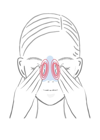 鼻全体を覆うようにして手のひら全体でハンドプレスします。