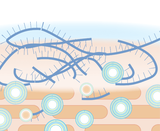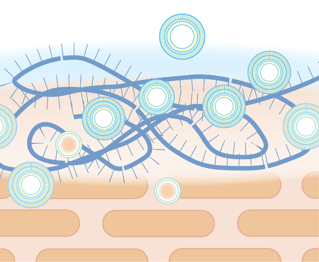 3Dリリーサー®が徐々に分解され、抱え込んでいたナノカプセルが浸透*していく。